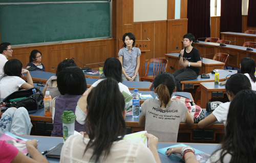 “想很重要,做也很重要,而决心是这一切的灵魂。”这是吕雁和纪媲龄对她们取得成功的总结,也是对即将参赛的同学们的鼓励。9月24日中午,吕雁、纪媲龄这对手捧“2008年金铅笔奖”的姐妹花在人文楼B301室和大家分享了她们参赛的经验,并就提出的问题进行了回答。
