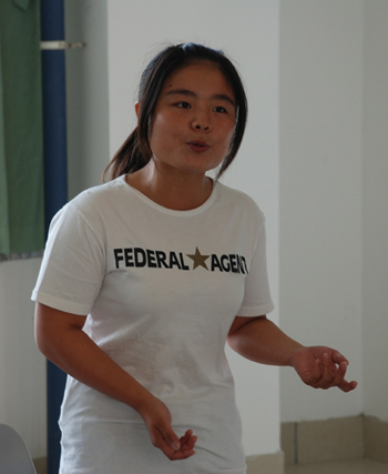 上午9点开始共进行了3场比赛,218教室中,在“美丽是福还是祸”的辩题中,正方抓住了美丽的事物往往容易让人接受”的现象;反方则从褒姒、貂蝉等例子中一再强调“美丽是祸不是福”。关于“金庸小说是否要写入课本”,正方从小说中充满着人性的光辉而辩,而反方则针对小说通俗易懂及课本的空间问题进行反驳。在217教室中同时展开了“快乐自己更幸福或是快乐他人更幸福”的辩论,正方一辩在立论中强调了“更”字,反方一辩引述了康德的哲学观点认为幸福与否只是凭个人的主观感觉。攻辩中双方将火力点集中于“自私”,究竟快乐自己是否是一种自私的行为。反方提出来正方解释何为自私,“如果你看到有人准备跳楼,而你不去解救,是否为自私呢?”在正方无法回答的情况下,反方继续追问,“正方既然不知自私的含义,又为何说快乐自己更幸福是自私的行为。”