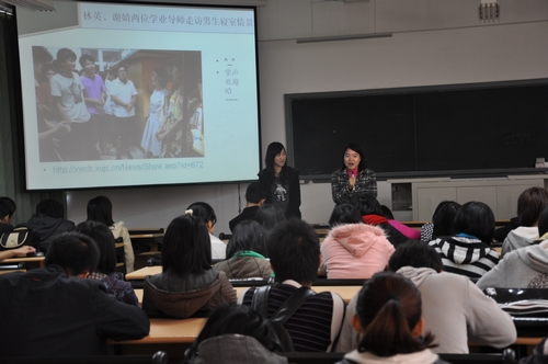 1月4号中午12:30,我系09新闻班在经管#204召开了本学期的最后一次班会。新闻学专业的两位学业导师林英、谢婧也亲临现场,就新闻专业期末复习迎考方面给同学做一个动员指导。