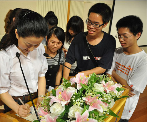 讲座结束后,我院同学代表送上精心制作的毛笔字画和院刊等小礼物赠予郭霁红女士,她表示现在的同学都很有前途,并承诺在以后的日子里会多来和同学们分享一些一线的经验。