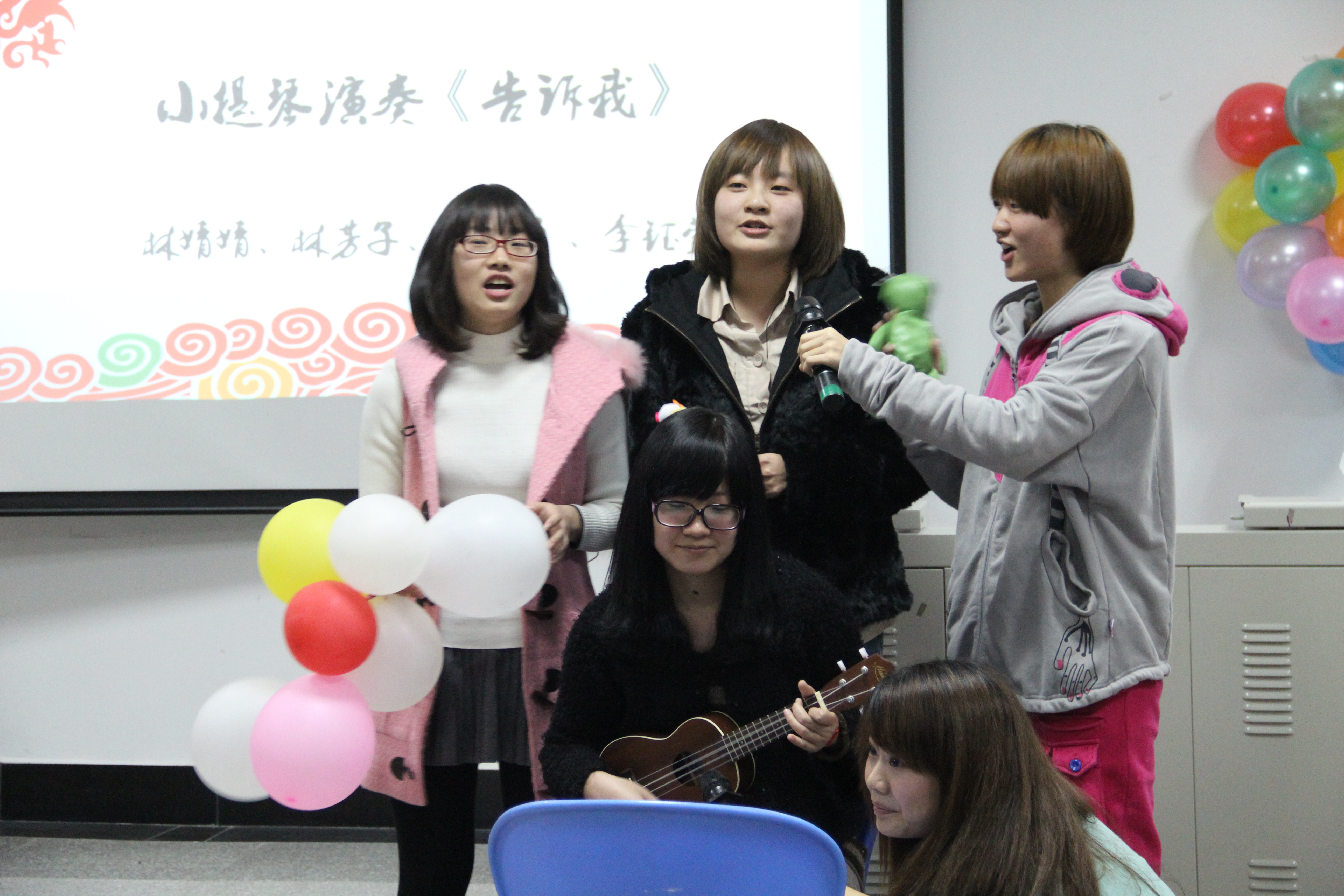 七点,晚会由微笑之星曾炜婷一首可爱的开场舞掀开了帷幕。人气歌唱小天后郑小琳和情歌小王子黄业钦深情演绎让大家连连尖叫。引发新的高潮是209宿舍跟216宿舍联手演绎的《酒吧一夜》。新晋班草黄蓉引发了众多女生的尖叫。身材西装戴着墨镜的她一首贴身辣舞《trouble maker》让全场气氛high起来。最后表演完还送出了演出小组的签名照,拿到签名照的李凡非常开心。之后,210宿舍的《狮子座》、213宿舍的猜谜语、115宿舍的情景剧还有飞龙雪聘等合唱的儿歌精彩上演。