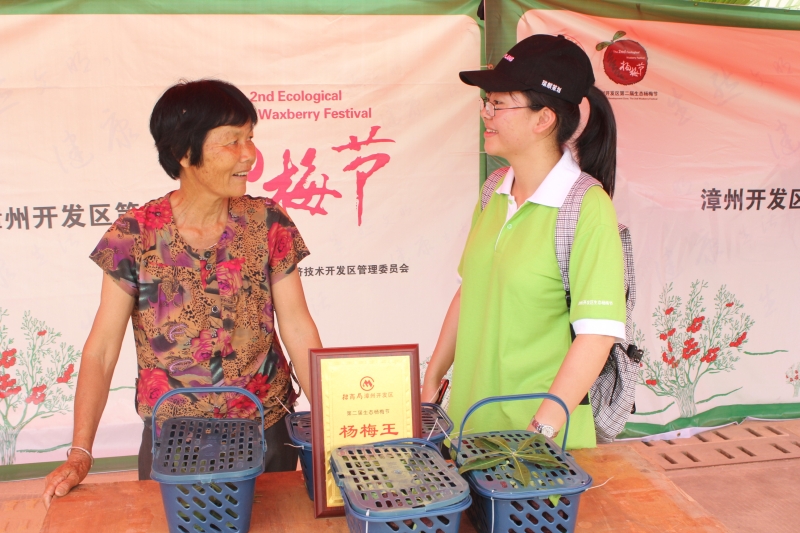 9点,开幕式还没有开始,同学们就投入了紧张的采访工作,这边采访表演嘉宾来自台湾的天亮飞组合,那边反采各媒体的记者。9点25分,随着本届生态杨梅节大幕的正式拉开,“特约记者们”更加忙碌了,台前幕后、杨梅展区,或是杨梅树下,处处都有着“果绿色”的11广电同学的身影,有的专注地拍摄开幕式的内容,有的认真地与采访对象进行交流,有的则细心地做着记录,有的则冒着炎炎烈日,跟踪采访采摘杨梅的游客们。“杨梅王”评选揭晓后,同学们更是冲上主席台与专业记者争抢位置,抓拍精彩的镜头,那股认真、执着、专业的劲头一点不输媒体的记者。