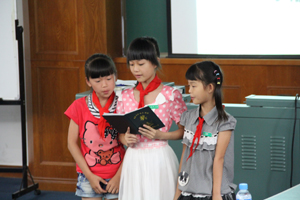 海平小学支教是团总支历年一直坚持的传统活动。来自海平小学的学生在会上表演了诗朗诵——《用目光倾听》。稚嫩而真诚的童声在会场荡漾,朗诵结束后会场响起了阵阵掌声。此外,团总支还给前来参加活动的小朋友送上了小礼物。海平小学教师郭英俊说:“很开心受邀能参加本次活动,同时感谢团总支的一直以来的支教活动。看到大家积极参加各种活动,各方面周密的布置,觉得很感慨。”