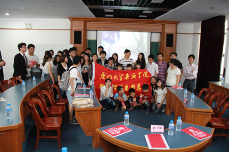 代表“北京”的火炬手郑重的与代表“伦敦”的火炬手进行圣火传递。这一幕出现在新闻传播系团总支第四届总结大会上,6月12日中午12点30分,总结大会在公一#208召开。人文与传播学院苏新春院长、人文与传播学院分团委书记郑育琛、新闻传播系团总支书记卢志良、广电专业辅导员黄丽明老师和海平小学两位教师出席会议。