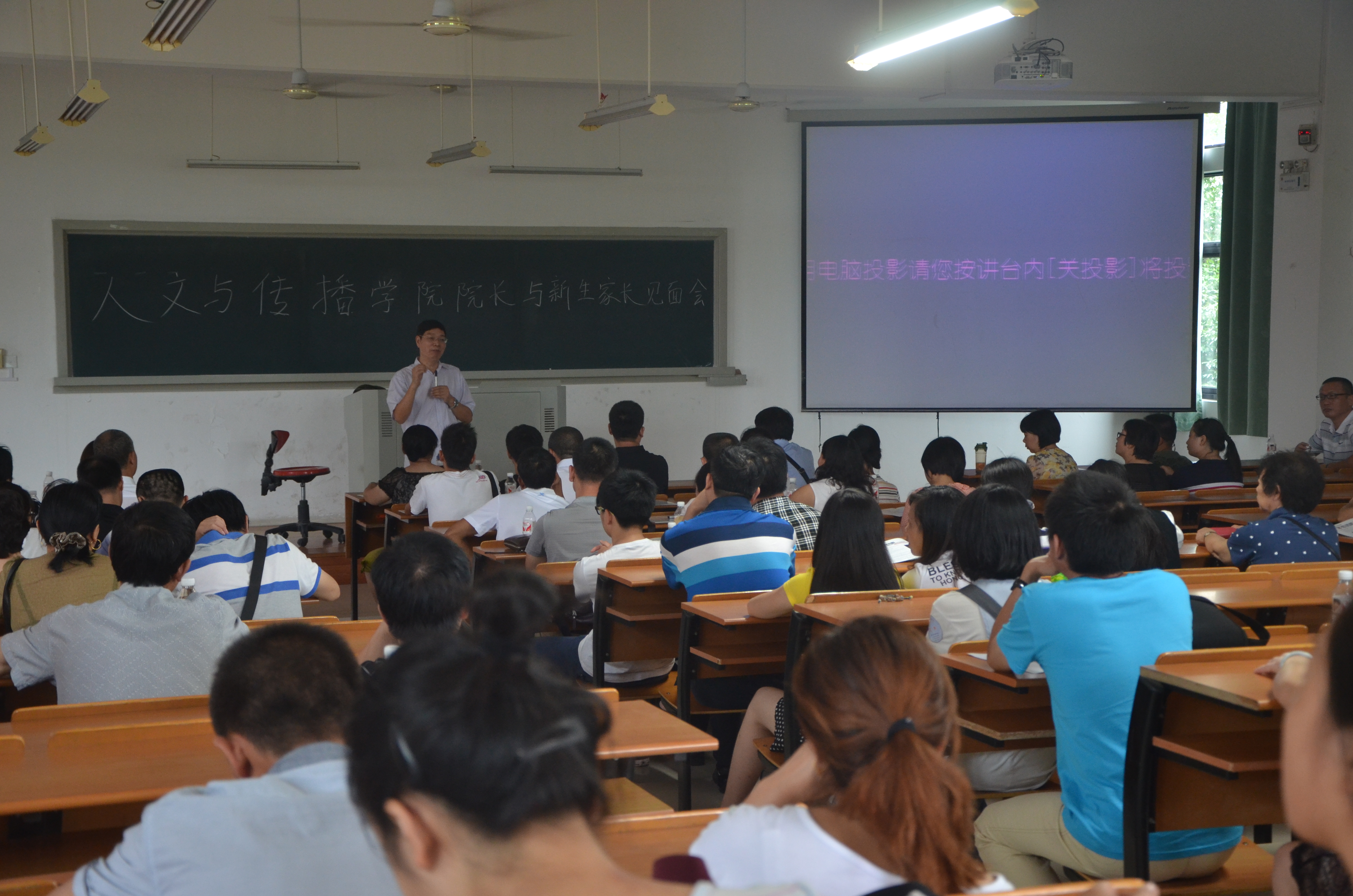 9月18日下午,人文与传播学院院长与新生家长恳谈会在主2楼的208教室如期举行。苏新春院长、院长助理潘新老师、学生工作负责人郑育琛老师、各专业辅导员和部分专业老师出席此次会议,为2012级新生与家长答疑解惑。
