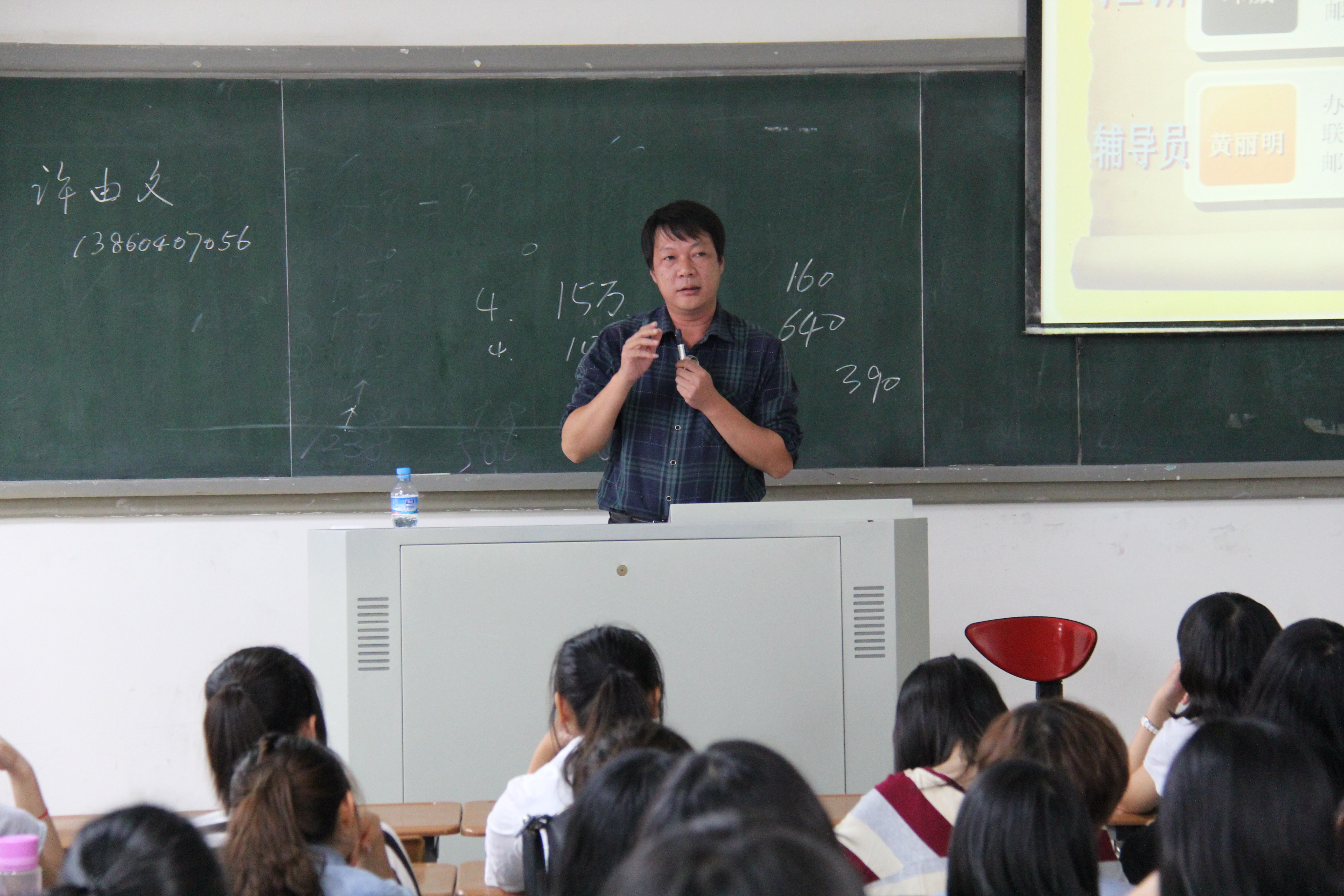 专业主任许由文老师全面、细致地为新生介绍了广播电视新闻学专业特点以及这个专业的就业前景等。首先,许由文老师列举了一系列广电专业自创办以来取得的突出成就,其中包括广电专业被获封“福建省特色专业”,广播电视新闻节目制作获封“福建省精品课程”以及历届广电人的各类优秀作品荣获全国多次奖项。同时也介绍了广电专业较为先进、齐全的机器设备,以及其频繁的使用率、借用的方便性;介绍了较为雄厚的师资力量,广电专业的老师学承高校、实践丰富。而细数这一系列的突出成就,不是嘉庚学院广电专业的自卖自夸,而是要让新生了解自己所处专业的优势,自己有多少不能错过的机会,自己完全可以通过自己的努力获得更大的成就,向学长学姐们看齐,甚至超越他们,为自己的人生铺垫,也为广电专业的未来贡献力量。接着,许由文老师向新生介绍了选择这个专业今后的主要努力方向,即广播电视新闻制作及纪录片制作方面,以及将来自己毕业后的出路,其中包括去电视台、电台就职,考研、留学、自主创业等。最后,许由文老师强调了几点,“做人比做事更重要,” ,即情商要高于智商;“多看书”,不仅仅是本专业的书,只要自己感兴趣的,有益的书都要涉猎;“会吃苦”,锻炼自己的抗压力和面对挫折的能力。