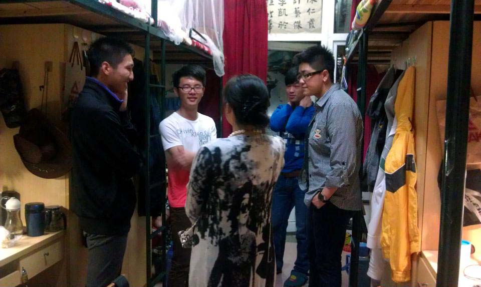 不同于女生们的震惊,男生们另一番反应。2012级中文系的男生们,一看到朱老师、袁老师出现在博学1男生宿舍门口。