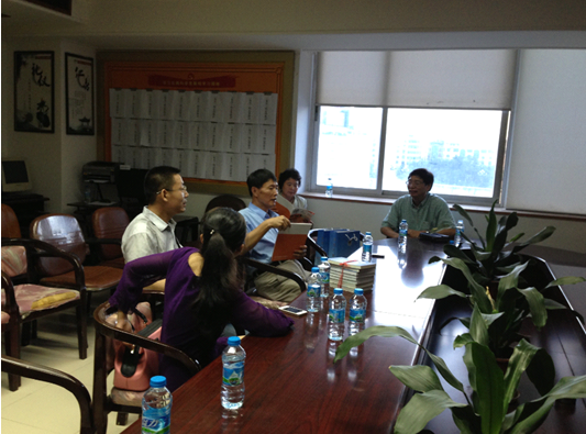 石狮党校领导与我校人文与传播学院苏新春院长、卜祥忠老师讨论交流。