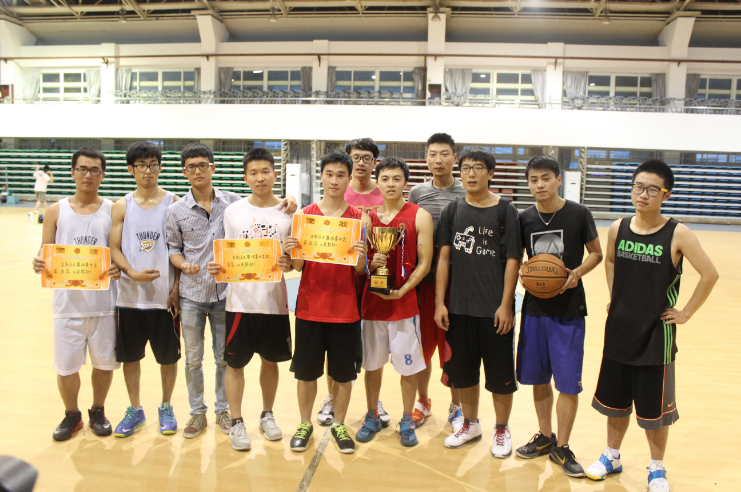 比赛结束后,进行了简短的颁奖仪式,11广告队员拿着冠军奖杯欢庆胜利,在他们的笑容中,我们看到了他们队员之间的感情与团结。本届篮球赛真正的达到了它的目的,增强了各专业间的友谊,凝聚了各专业同学之间的力量!新老生也获得了一次很好的交流!