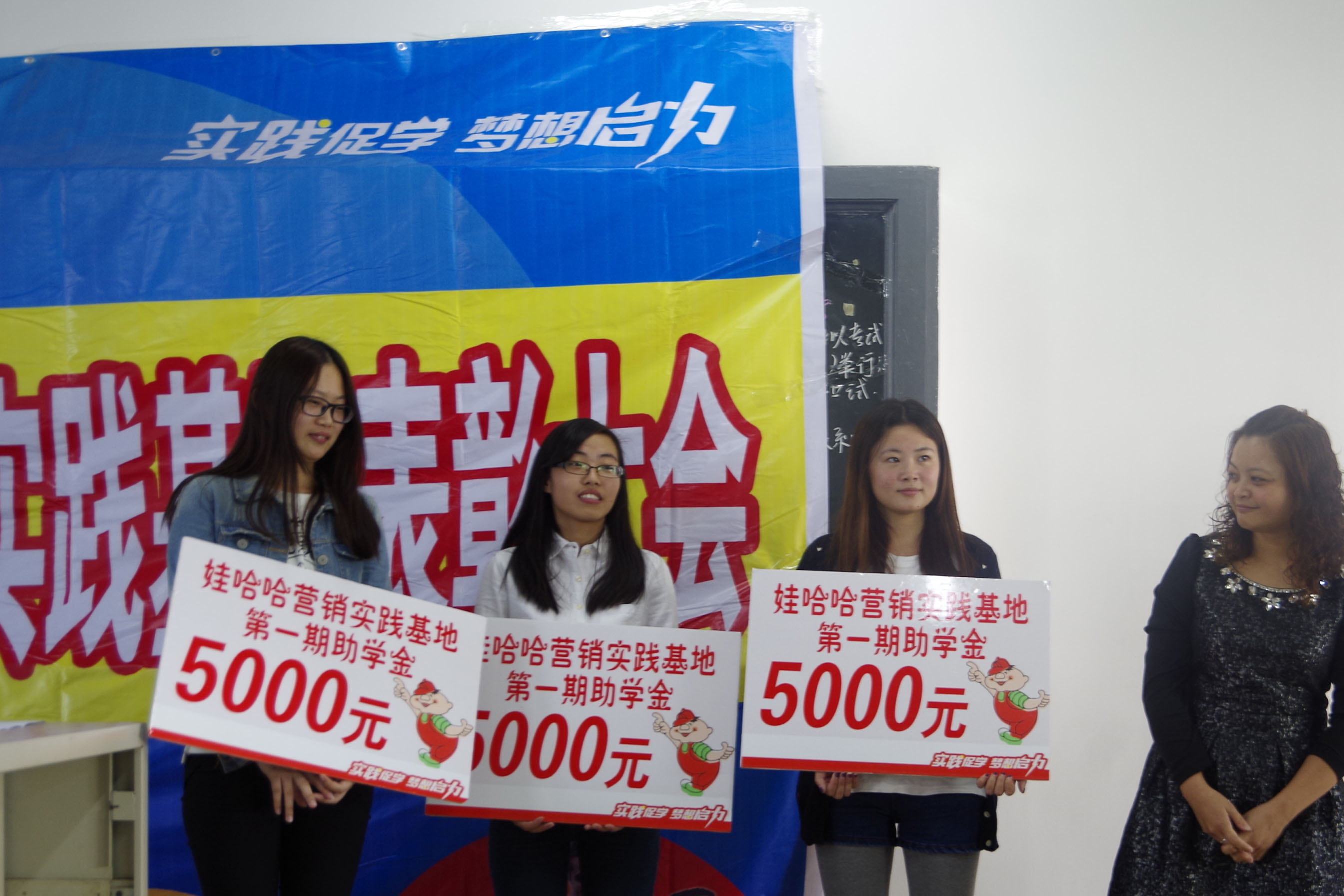 大会首先对诸位获奖者进行了表彰,人文与传播学院广告学专业主任朱莉老师荣获“娃哈哈2013市场营销荣誉顾问”称号、我院10级广告专业学生林向平、安冬梅、黄雨晴三位同学荣获优秀学员称号及奖助学金各5000元。现场由来访的娃哈哈集团嘉宾对我院师生颁奖,获奖同学与现场师生分享了她们的心得感受并激励大家踊跃参与此次活动中来。