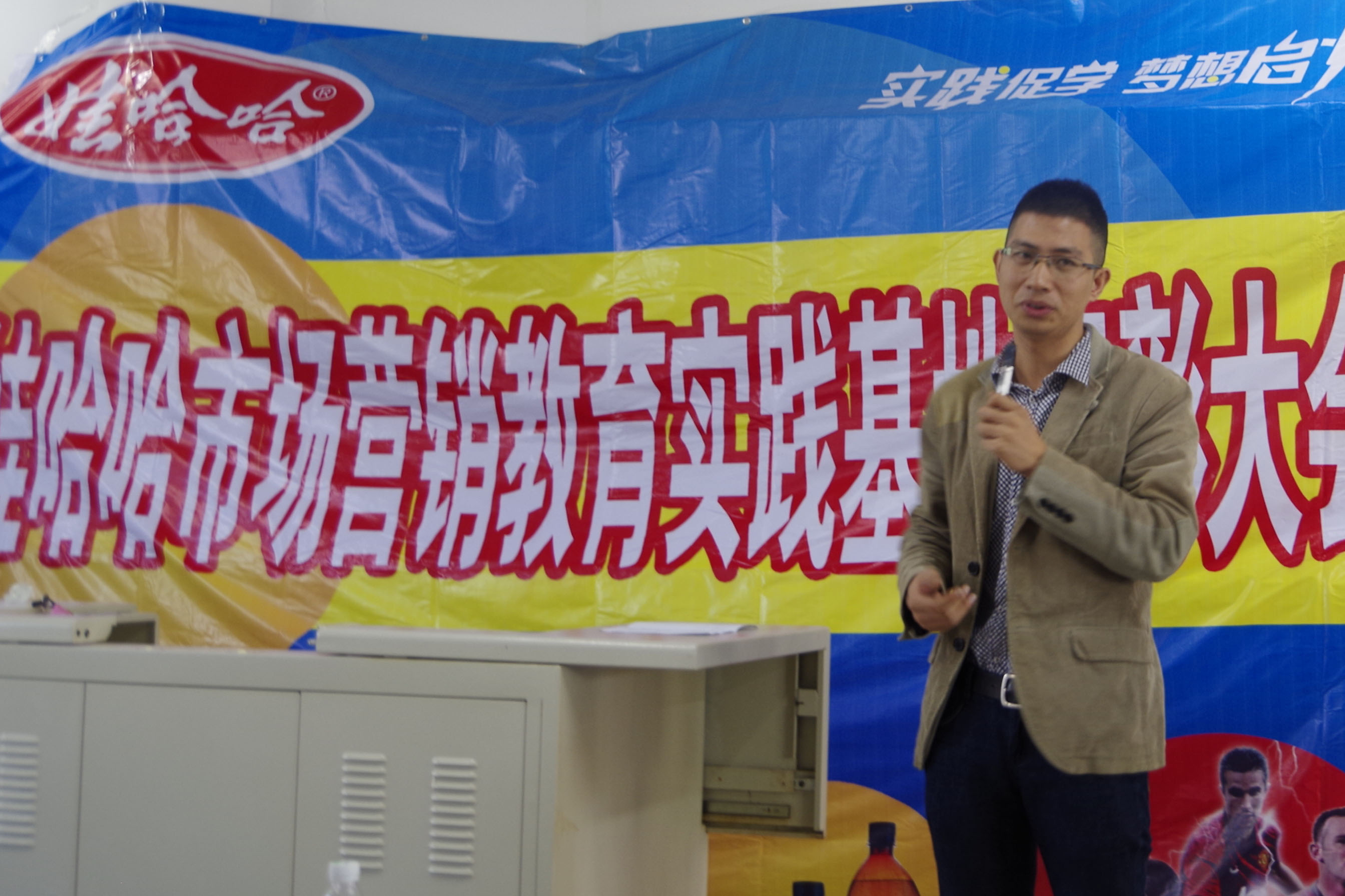 颁奖仪式结束后,陆良庭先生就娃哈哈集团同我院建立市场营销教育实践基地的理念进行了分享。陆经理不仅为同学们详细介绍了娃哈哈市场营销教育实践基地活动内容及流程,还展示娃哈哈集团现行的学生策划案例供同学们借鉴学习。陆经理在大会上一直鼓励学生们多进行市场调研活动,积极参加实践比赛,将理论与实践结合起来。并郑重承诺——如果我院学生能够提出适合市场运作的方案,娃哈哈集团将在经验及资金上给予必要的支持,以期令同学们能在实践中得到更好的学习。