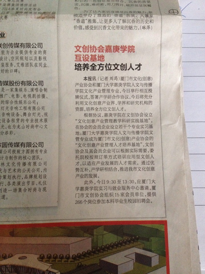 [厦门日报]文创协会嘉庚学院互设基地培养全方位文创人才