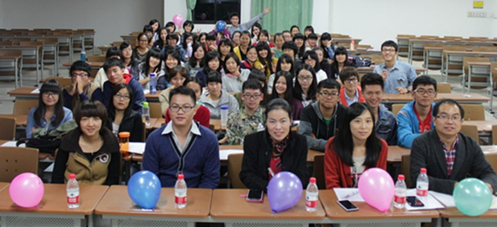 在全班庄重齐唱团歌后,高静湄、赖伟芳等学生代表在讲台前表达了自己眼中的“中国梦”和自己心中的“文创梦”,赢得了阵阵喝彩,更是引得付强、步会敏和陈省能老师走上台前,和同学们分享自己的梦想,用亲身经历和青春梦想为文管的同学们加油鼓劲,勉励大家“朝夕追梦”,为整个会场带来浓浓温情。