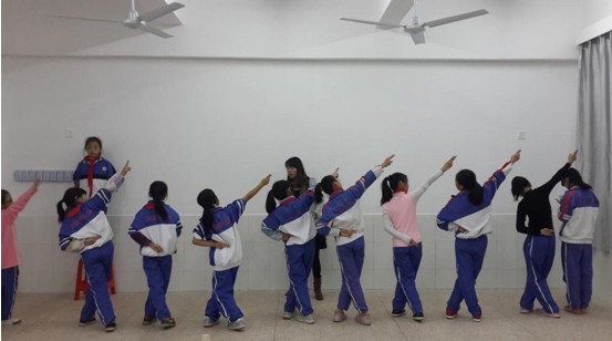 小朋友的认真总能激发排练同学的热情,“来,这个动作应该挺直身段!对!很好”、“这句诗词应该急促点,没事,再来一次”,负责指导这个节目的狂歌诵读社的李思嘉每次总是耐心地指导他们。而为了确保每次排练的顺利开展,狂歌诵读社的其它成员做好后勤保障工作,借好场地、通知选手、备好音响、选好音乐。狂歌诵读社成员说到:“小朋友很可爱呐,看到她们也会想到我的小时候。我们一起齐心协力排练就很会有成效,每次训练完我也觉得很欣慰 渐渐了解了她们每个人的性格和小脾气。虽然排练比较辛苦,但是我觉得很开心。”