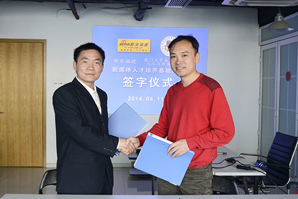 4月11,我院与新浪福建举行签约仪式,共同建设新媒体人才培养基地,也为我院相关专业新增一个新媒体方向的实习实践平台。签约仪式在新浪福建总部——福州市东街新都会财经广场七楼举行,新浪福建总经理林文琦、总编辑王宇,我院院长助理邓葳、新闻学专业主任易欣,专任教师李华、林英等出席了签字仪式。
