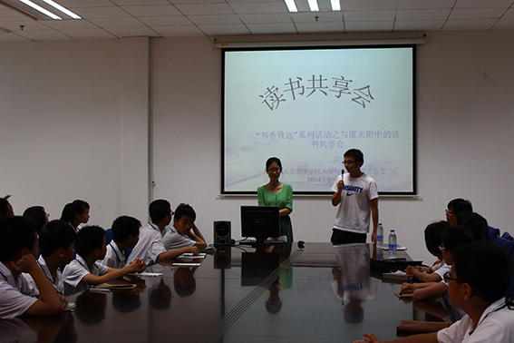 6月4日下午,我院图书馆107会议室传来一会传来深情的朗读声,一会传来会意的笑声,原来,由人文与传播学院学生党支部组织的与厦门大学附属实验中学读书分会正在进行中。