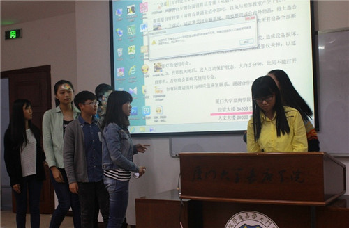 “创意自行车”“智能机器人”“充满中国风的现代工艺”“回忆里的老厦门”令同学们听地如痴如醉,频频点头。这是第一组同学倪锋、周雨石、黄志民的分享,他们分别从“未来、现在、过去”向同学们讲述了他们所经历的文博会。“未来就是属于将偏执的理念发挥到极致的人!”倪锋同学将这句话作为结束语,激昂的语气中透露了他对文管精彩未来的坚定信心。而第二组的代表郭惠桢同学在“传统中预见未来”,通过精美的工艺品和特色闽南戏曲向同学们展现了她的“心”体验。第三组的代表赵心同学通过零碎的画面,带同学们领略了另一番的风味文博会。