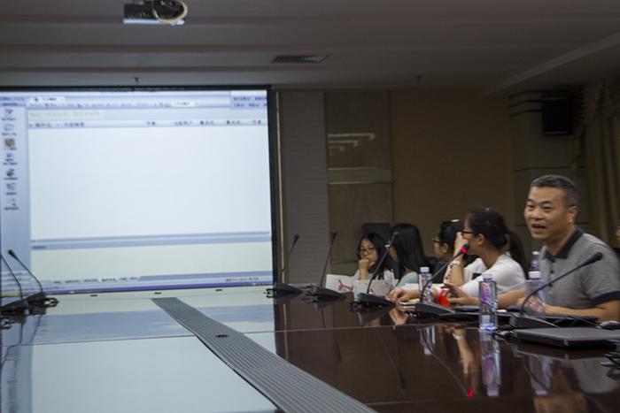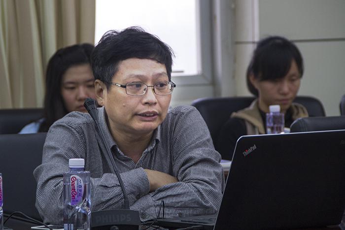 厦门日报新闻编辑中心副主任陈天助讲解党报与都市报在新闻选择上的差别。