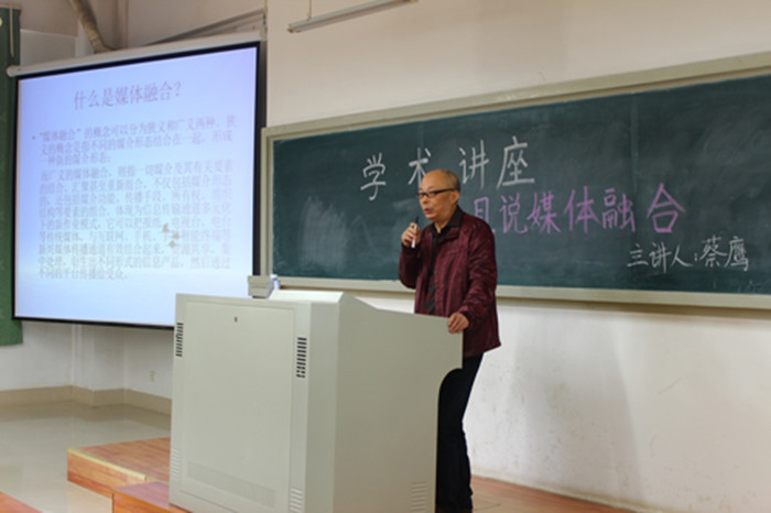 12月10日下午2:30许,应我院邀请,厦门广播电视集团原副总裁蔡鹰在主2#201教室为2014级新闻学专业、广播电视学专业的同学作了一场关于媒体融合的讲座。