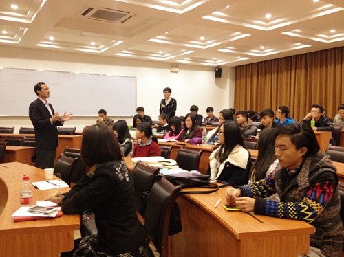 12月12日,文化产业管理第六场专业指导讲座在经管楼#208教室召开,厦门大学文化创意产业研究中心副主任苏瑞国教授以《文化是最好的生意》为题为2014级文化产业管理专业学生做了详细的专业学业规划指导,并就学生面临的专业选择问题做了较为精辟的解答。文管专业主任王乃考主持了讲座,沈淑琦老师、吴宝光老师也陪同出席了讲座活动。