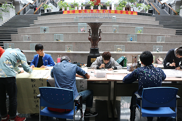 据悉,第五届汉字书写大赛分为书法专场及听写专场,此前已分别在图书馆及公共教学楼进行过初赛,其中书法专场参赛选手近一百五十名,作品质量极高。此外另有近百名选手参加了听写专场的初赛,并角逐出前16名听写精英进入决赛。