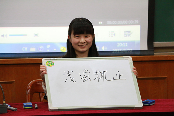 4月22日晚,第五届汉字书写大赛听写专场决赛暨颁奖典礼在人文楼B301教室隆重举行。16名听写精英进入决赛,捉对厮杀,并决出最终的冠军。许多同学都来到了现场,为参赛选手加油助威,见证王者的诞生。
