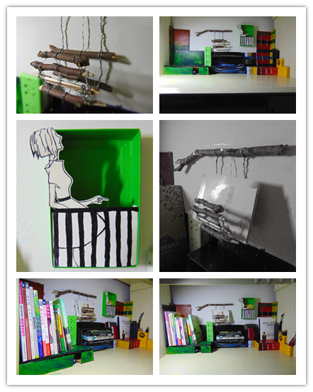 而第二名的获奖者应艳萍同学则做了很充分的准备,她在手工方面十分有兴趣,“去年有一个‘废品设计大赛’我没有参加,觉得很遗憾,于是今年就来参加这个比赛啦!学校有很多树枝、废弃铁丝之类的东西,我一直想找机会做一个这样的作品。”应艳萍同学这样说。