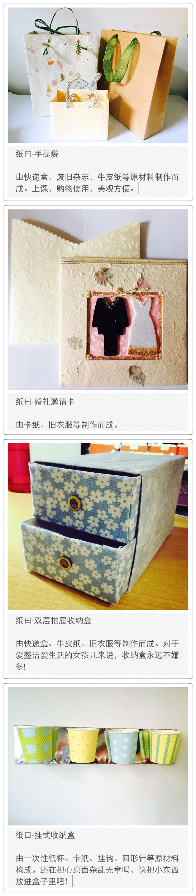 第一名的获奖者陈静瑜同学表示赢得这次比赛的胜利完全是偶然,刚开始与朋友开玩笑说要参加,结果误打误撞成了冠军,她还告诉我们:《纸曰》就是一系列贴近生活的小作品,有纸袋、收纳盒等,她的创意理念就是用生活最常见的废品做出最常用的东西,又环保又实用,一举两得。她最想感谢的是朋友们,朋友们为她的比赛做出了很大的努力。