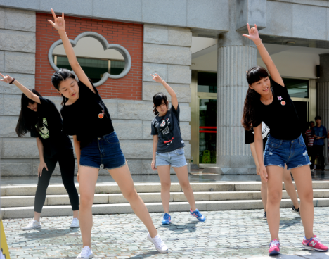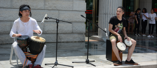 上午,在主1楼门前宽阔的场地上还进行了舞蹈和击鼓等表演,成为本次活动的一大亮点,吸引了大批人群围观。现场的音响全天放送音乐,加大了宣传和吸引力度。这样载歌载舞的场面,生动形象地向来访者展现了文传院的精神风貌,将文传学子的创造才能展露无遗。