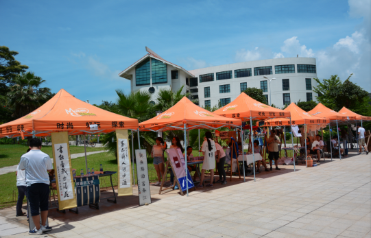在图书馆外,是嘉庚的各大社团展示棚。嘉庚知行天下协会,轮滑社,汉服社,环保协会,跆拳道社等等社团搭建了自己的展示棚,用大量的活动拍摄照片以及设计独特的海报向众人展现了社团风貌。这些彰显着大学校园活力,代表着当代大学生青春张扬的个性的社团成为本次校园开放日一道特别的风景线。