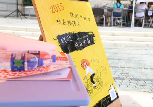 6月14日周日,从上午9点半至下午3点半,厦大嘉庚学院人文与传播学院举办校园开放日活动。在校学生自主设置摊位,进行社团和专业方面的物品展示,向来校咨询的2015年应届毕业生及毕业生家长提供关于院系专业,社团活动等等的相关介绍。本次活动有两处主场,一个是位于嘉庚主楼群1号楼西侧的广场,是“文传学院校园文化节”活动现场,而图书馆则作为本次校园开放日的公共咨询点。