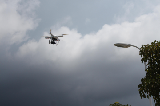 6月14日,校园开放日期间,文传院组织航拍技术展示。表演分队展示了新购买的三台大疆精灵2飞行以及最新的四轴飞行器-悟。飞行表演分队表演了低空悬停,环绕飞行,垂直起降以及穿越云层等航拍特技表演。