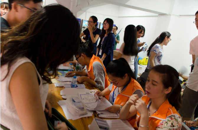 从早上7点钟开始,伴着淅淅沥沥的小雨,人员陆续到位,开始一天的迎新工作。此次迎新志愿者分早、中、晚三班,轮流负责,一直到晚上十点都有志愿者坚守在接待点。文传院的迎新注册点设在南安园区下的电信营业厅旁,同时,在公交车和私家车停靠点分别安排有志愿者进行接待,引导新生到注册点并带他们找到宿舍。今年的新生住处较为集中,男女生分别住在南安1和南安6。截止到今晚,大部分新生都已来校报到,28日还有半天的迎新时间。
