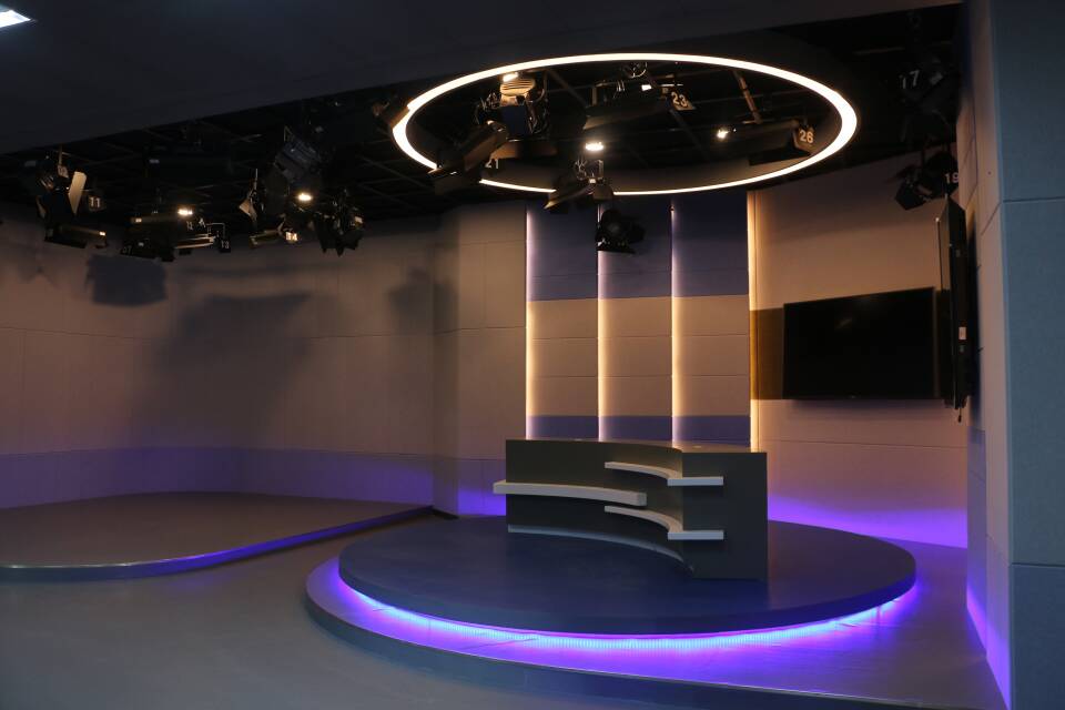 位于主楼群一号楼517的多功能演播厅共有近100个座位,主要是作为《影视赏析》课程和《中外影视电视作品分析》等课程所用。除了满足基本的教学功能之外,还将承担学术报告等活动。同时该实验室还集影视艺术研究中心、广播电视学专业等研究中心和专业行政功能于一体,更好地实现一室多能,充分发挥实验室的作用。而位于主楼群一号楼的516的多功能新闻演播室主要用来进行视频拍摄、新闻访谈节目的制作等教学需要。