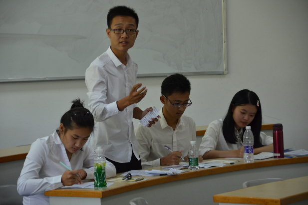 10月16日中午12:30,我院辩论队在经管楼举办了2015级新生辩论赛冠亚军争夺赛,比赛特邀通识部李艳林老师、前辩论队队长王静姝、副队长赵凌和王皓然为评委。这次双方围绕“反恐行动中,应当/不应当使用刑讯”的辩题展开辩论。开篇立论环节中,在2分30秒的时间里正方一辩从三个方面阐述了刑讯在侦查恐怖活动中的有效性,并且强调了使用刑讯手段的对象是极可能造成极大社会危害的恐怖分子,一针见血,简洁扼要。而反方则从嫌疑恐怖分子的人权,国际法案的颁布,社会道德和法制文明的角度剖析了刑讯的不合理性,有理有据,使人信服.