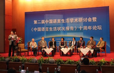 10月15-16日,由北京语言大学和商务印书馆联合主办的历时两天的第二届中国语言生活学术研讨会暨《中国语言生活状况报告》十周年论坛在北京语言大学圆满召开。此次会议有六十位研讨嘉宾,近两百位专家学者组成的强大阵容汇聚一堂,共贺《中国语言生活状况报告》和“语言生活派”十周年,并就相关专题展开研讨,堪称本年最盛大的语言学术盛会。本次论坛在15日和16日分别进行了语言生活派、语言监测、语言皮书、华语研究、汉语盘点、语言战略、一带一路七项议题的研讨,研讨以主持人访问、嘉宾讲述,结合观众互动的形式进行。七场研讨如同七场丰盛的学术盛宴,将语言研究和语言生活研究方方面面的话题和前沿课题做了一个系统的展示和梳理。