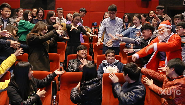 林筠老师《电视节目形态学》这门课程曾经把课堂搬到了滕王阁原石滩会所,录制了互动类节目《人生AB剧之“小滑板的AB剧”》。从节目的策划、演员排练、舞蹈布置到剧本编写、节目录制锻炼了学生能力,还有策划课程创意体验,圣诞节在食堂、图书馆、电影院等场所策划快闪活动,不仅让学生感受快闪活动的公益主题也让学生体验现场节目制作,促进专业学习。