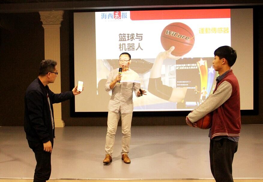 演讲之前,黄毓斌社长先在大屏幕上打出一张《海西晨报》的二维码,让同学们扫描关注,并在后台提问互动,由此引出“新媒体”这个话题。接着黄社长抛出一连串数字,“两个14%、64.8%、7%”,看着同学们一头雾水的样子,黄社长解释道:“这些分别是2015年报社的收入增长、电商占全社收入的比例、品牌运营收入增长、广告收入增长”。在传统纸媒硬广下滑的情况下,《海西晨报》还能实现收益增长,很大一部分得益于与新媒体的融合加创新。