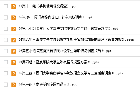 中文2014级同学本学期在“人文学科研究方法”这门课程的学习中,一边学理论和方法,一边开展社会实践调查,每个小组选择了一个专题,从选题、设计调查方案、实施调查、统计数据、分析报告,完整地经历了一次科研方法的实践,把研究不同阶段中所需用到的知识和方法贯通起来。特别值得可喜的是所选择的课题,关注着我们的校园和周围生活,显示出了很好的关注现实问题社会问题的眼光、情怀与能力。我们从11个专题中选了8个专题在这里展播,无论是积极些的现象,如“厦门地区高校废旧自行车的利用”“嘉院大学生兼职情况”,还是客观的中性现象,如“大学生手机使用”“大学生生活费使用情况”“对食堂的满意度调查”“大学生阅读情况调查”,或是有些消极因素的现象,如“校园冷暴力”“大学生熬夜现象”,都融入了我们同学的观察、思考与愿望。