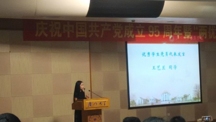 近日,厦门大学表彰2014-2016年优秀共产党员、优秀党务工作者和先进基层党组织,我院2012级新闻学专业王艺兰获评厦门大学优秀共产党员。2013级广电专业朱兰英、2013级文化产业管理专业张佳辉获评2015-2016年厦门大学嘉庚学院优秀共产党员。一个党员一面旗帜,一个支部一座堡垒。走近优秀同学,感受榜样力量。