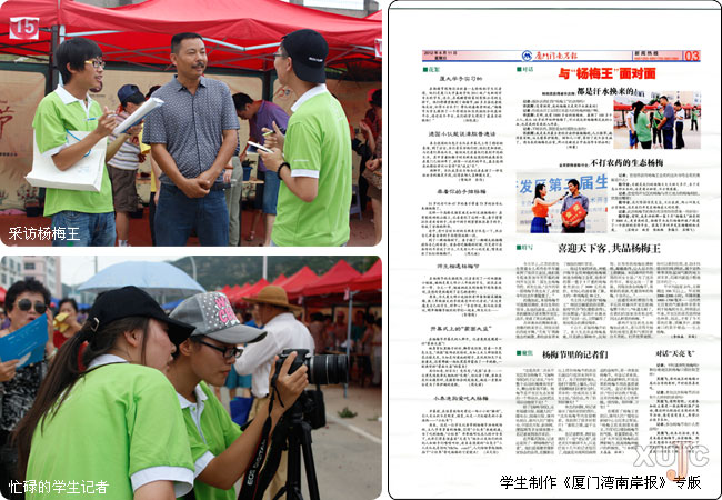 据了解,此次活动是“新闻采访与写作”课程的一次课外实践活动。任课老师潘新主动与杨梅节组委会联系,被许以特约采访团的身份参与活动,《厦门湾南岸报》特别腾出一个专版刊发同学们的稿件。