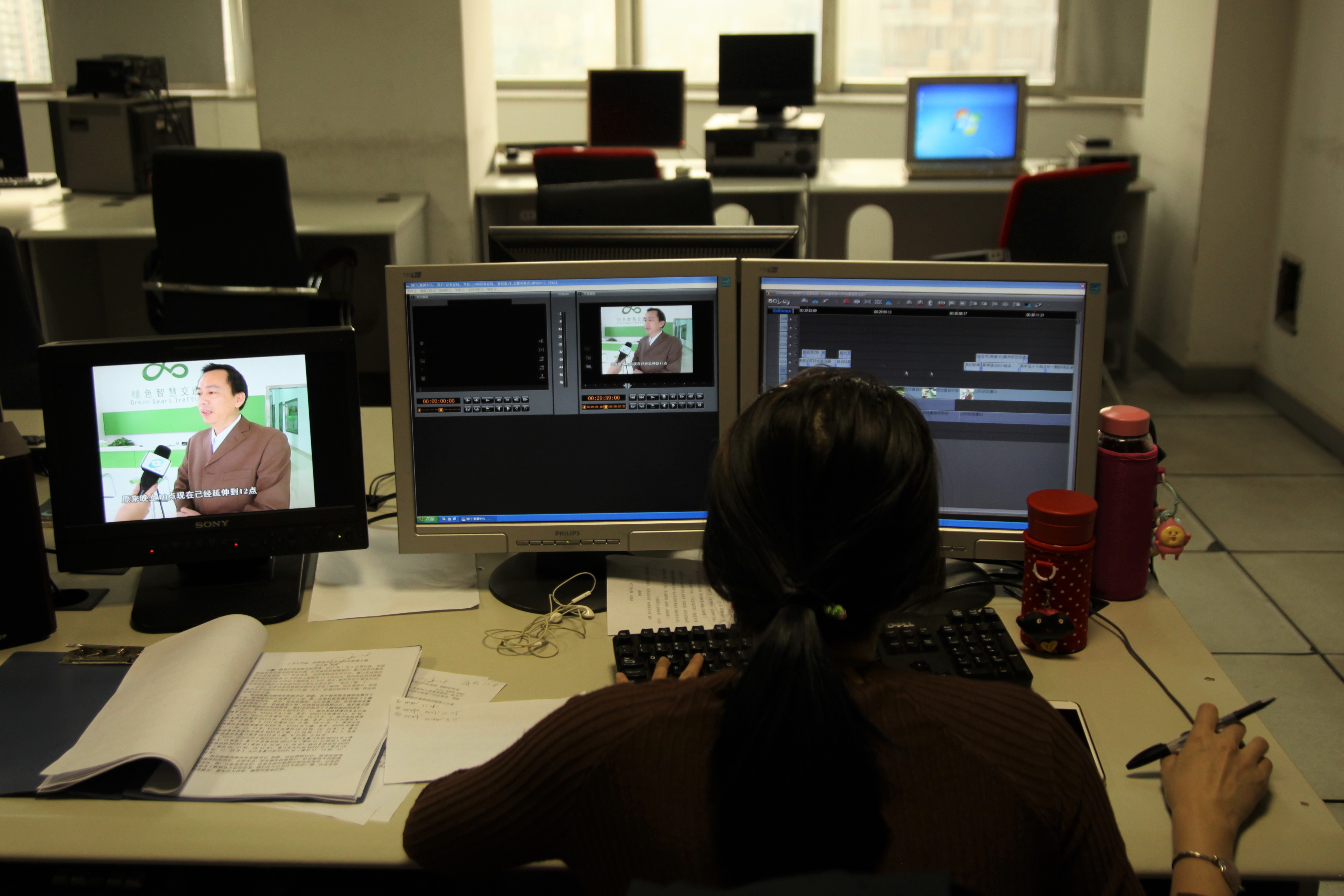 经过一个小时的车程,我们顺利到达漳州电视台,并得到了漳州电视台工作人员的友好接待。由于漳州电视台正在进行设备的升级改造,部分场地没有办法参访,所以在工作人员的带领下我们一共参观了三个地方。首先我们参观的是模拟演播厅,进入演播厅,映入眼帘的就是大量的录像设备和工作台。在工作人员的介绍下,我们了解到实时抠图、转播的技术,我们的同学也亲身体验了成为新闻主播的感觉。由于正值工作日,我们没有多逗留便前往电视新闻视频的制作部。工作人员向我们介绍,播出之前的新闻都会经过制作部工作人员的精心剪辑修复制作再播出,常常是几个人同时盯着一个片段反复修改,达到良好的信息、视觉传达效果再整合播出。可想制作部工作人员的工作量也是非常大的。