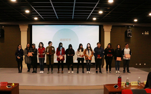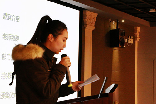 随着开场视频的播放,大家把自己的心声书写在纸上并投入抽奖箱中。总结大会开始,指导老师张佳妮上台致辞,对宣传中心本学期以来的各项工作给予肯定和赞赏,同时提出了相关改进意见。随后,宣传中心六大部门--办公室、采写部、摄制部、编辑部、新媒体运营部和美编部的发言代表分别对本学期的工作情况进行了认真细致地展示和总结,并对部员们提出了更高的要求和期许。