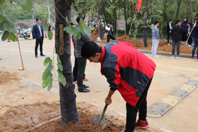 3月12日是一年一度的植树节。早上9点,于公共教学楼前开展了一个以“喜迎十九大,嘉人谱芳华”为主题的植树活动。参与活动的有各大院系同学老师代表、嘉庚附属幼儿园大班的同学们及其教师公会、国旗护卫队成员。而人文与传播学院是以院内团建中心青工部部长李梦实带队,带领魏楚宜、吴思颖等九位同学一同参与此次活动。