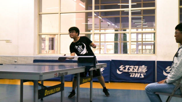 第二个上场的是15广告的黄阳楠,他是这次文传院乒乓球队的队长。双方进入激烈角逐。无奈对手实力强劲,黄阳楠只得甘拜下风。