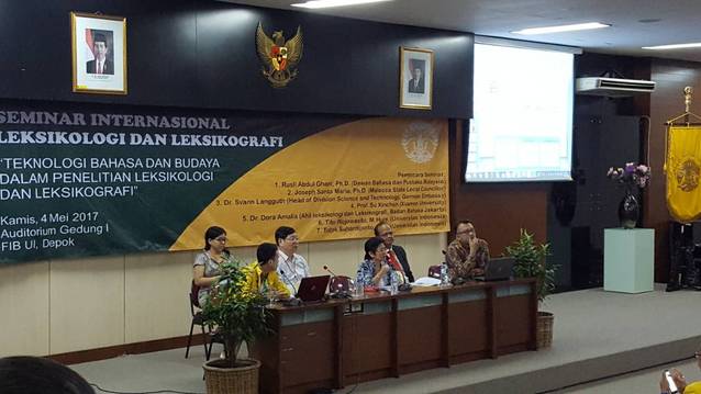 2017年5月4日,由印度尼西亚大学人文学院词汇学与词典学研究室主办的词汇学与词典学国际研讨会在印度尼西亚德波印尼大学本部召开,厦门大学嘉庚学院人文与传播学院院长,国家语言资源监测与研究中心教育教材语言分中心主任苏新春教授作为主讲嘉宾在会上作了题为“论对外汉语词表与基础教育词表的差异”的报告, 16级印尼博士研究生黄世友(Fransiska Wiratikusuma)担任会场翻译,并在小组讨论环节中发表了题为“《当代中文》课本中印尼学生关于汉语实词和虚词的用法”的论文。