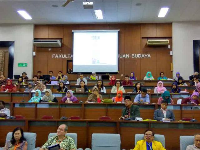 印尼大学是印尼排名第一的公立大学,其人文学院词汇学与词典学研究室成立于1997年7月,曾出版《汉印词典》、《印尼语现状》等重要文献,是印尼国内词汇学与词典学领域的首屈一指的研究机构。此次研讨会由印尼大学中文系主任Hermina Sutami教授主持,特邀的主讲嘉宾除苏新春教授外,还包括印尼大学Totok Suhardiyanto博士、马来西亚语言与文献中心Rusli Abdul Ghani博士、雅加达语言中心Dora Amalia博士、德国大使馆科技部部长Svann Langguth博士等,主讲嘉宾们在会上分别介绍了印尼语料库的发展概况、《印尼大辞典》的编纂与发展、地名学与水体名称学——印尼地名与河名的词源等内容。此次会议共有100余人参会,近70人参与会议讨论,研讨会气氛热烈,参会代表均表示在听取大会发言和参与讨论中收获颇丰。