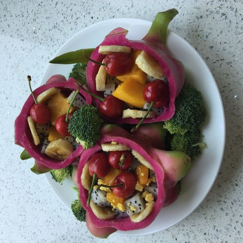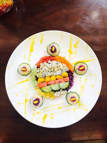 该项课程作业包括小组作品策划方案和现场实际作品制作两部分。课堂上,101咖啡厅运营团队邀请的健身教练为同学们讲解健康饮食知识,各小组运用创意方法进行创意水果沙拉制作,各小组首先要对对本小组的制作理念和创意方法进行阐述,随后各小组就投入到紧张的水果沙拉制作当中。比赛过程中,各式各样的水果在同学们的手指间飞舞,汇总成一个个风格迥异的拼盘,一道道精致的沙拉大餐争奇斗艳,同学们争先恐后热情高涨,把自己在课堂上学习到的知识运用到实际创作当中,一盘盘充满创意又色彩艳丽的水果沙拉呈现在评委老师面前。