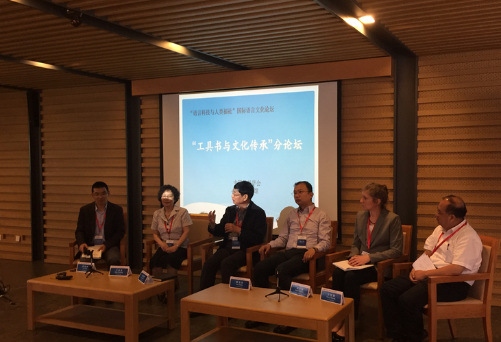 苏新春院长作为“工具书与文化传承”分论坛的座谈特邀嘉宾参加,该分论坛由中国辞书学会与商务印书馆共同承办,分为两个板块,第一个板块为汉语辞书专题。中国社科院语言所江蓝生研究院以“传播中华文化,引导语文规范的璧”为题,向《新华字典》《现代汉语词典》致敬。苏院长则着重以“工具书与中华文化的传承与发展”阐发了我国辞书研究传统与中华文化传承之间微妙默契的关系,以辞书编纂的历时变化实例生动详实地描绘了辞书的编纂、演变与社会历史文化共生、互动、记录以及传承的对应关系。第二个板块为外语辞书专题。中国台湾东吴大学英文系曾太元副教授以几个中国词汇为例,论述《牛津英语词典》中的文化传承元素。法国汉学家魏明德(Benoit Vermander)认为《利氏汉法词典》是双语工具书的大树。与会代表就以上发言进行了热烈的讨论。