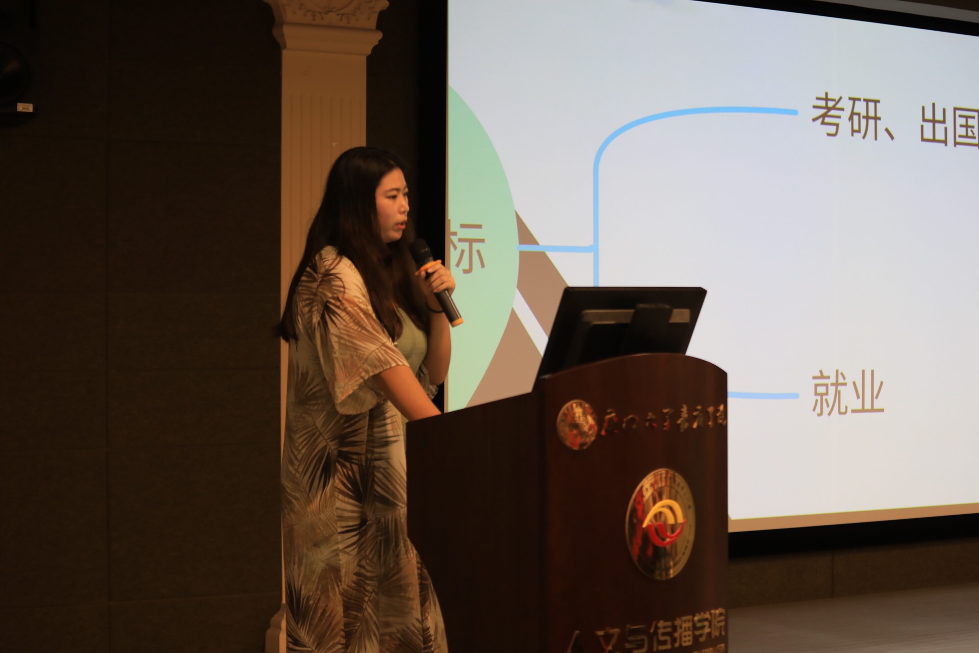 蒙思亦是14级广电的学姐,她以时间线为顺序向同学细细分享了她的个人经历,从转专业到参加新闻频道的实习,再到作为交换生去台北的学习经历。思亦在各种尝试中不断成长,“大一的你们一定要不断地探索、试错,再接着逐渐成长。要不断地尝试,找到你真正的热爱,并且认真对待他,为之努力。”而在新闻频道的她克服了恶劣的工作环境,完整报道了一次完整的厦门台风系列报道,“没有什么东西比想象的容易,但你要相信你比你想象得更强大。”“在各个活动中最难忘的就是与大家共同完成一件事情的那份成就感。”思亦坦言,“有时候你的生活中会有很多事情同时待解决,这个时候你就需要分析当前哪一件事情对自己来说是最重要的,有重点有计划地去完成。”